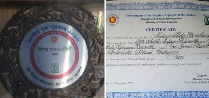 দেশের বেকার যুবসমাজ,নারী উন্নয়ন, দরিদ্র বিমোচনে বিশেষ আবদানের স্বীকৃতিস্বরুপ চট্টগ্রামের বেসরকারি সমাজ উন্নয়নমূলক সংস্থা “অগ্রযাত্রা ” জনাবা ঝিনুকের ভেতরের মুক্ত সাগর কন্যা নীলিমা আকতার চৌধুরীর সারাদেশে ১ম স্হান অধিকার করে সর্বশ্রেষ্ঠ যুবসংগঠন-২০০১৬ পুরষ্কার ভূষিত হয়েছেন,গনপ্রজাতন্ত্রী বাংলাদেশ সরকারের মাননীয় প্রধানমন্ত্রী বঙ্গবন্ধু কন্যা জননেত্রী শেখ হাসিনা এমপি কাছ থেকে সর্বশ্রেষ্ঠ যুবসংগঠন-২০১৬সালে পুরষ্কার গ্রহণ করেছেন অগ্রযাত্রা ও বঙ্গবন্ধু সাংস্কৃতিক জোট- কক্সবাজার জেলা সভাপতি হিসেবে। স্হান-ওসমানি স্মৃতি মিলনায়তন ঢাকা।