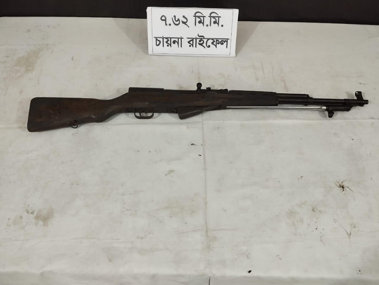 প্রেস বিজ্ঞপ্তিতে বলা হয়েছে, গত ৫ আগস্ট সন্ধ্যায় স্থানীয় উত্তেজিত জনতা নোয়াখালীর বিভিন্ন থানায় আক্রমণ, ভাংচুরসহ অগ্নিসংযোগ ও লুটপাট করে। লুটপাটের এক পর্যায়ে দুর্বৃত্তরা থানা থেকে বিপুল পরিমাণ অস্ত্র ও গোলাবারুদসহ বিভিন্ন সরকারি সম্পত্তি লুট করে নিয়ে যায়। পরবর্তী সময়ে র্যাব-১১ এর একটি গোয়েন্দা দল থানা থেকে লুট হওয়া মালামাল উদ্ধারের জন্য নোয়াখালী ও লক্ষ্মীপুর জেলার বিভিন্ন থানা এলাকায় অভিযান পরিচালনা করে। এরই ধারাবাহিকতায় সোমবার রাতে বেগমগঞ্জের কালারপুল এলাকা থেকে পরিত্যক্ত অবস্থায় একটি ৭.৬২ মি.মি. চায়না রাইফেল উদ্ধার করে।