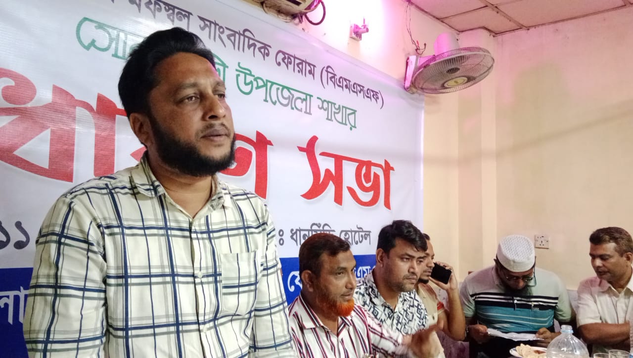এতে অতিথি হিসেবে বক্তব্য রাখেন বিএমএসএফ সাবেক কেন্দ্রীয় যুগ্ন সম্পাদক এবং নোয়াখালী প্রেসক্লাবের বর্তমান যুগ্ম সম্পাদক এ আর আজাদ সোহেল। তিনি বলেন, পিছিয়ে পড়া জনগোষ্ঠীর জীবন মান উন্নয়নে আমরা সাংবাদিকরা প্রান্তিক পর্যায়ে রিপোর্ট করে থাকি। কিন্তু তারা এগিয়ে গেলে ও আমরা পিছিয়ে আছি। আমরা যাদের জন্য লিখি তাদের ভাগ্যের পরিবর্তন হলেও সাংবাদিকদের হয়নি। এর একমাত্র কারন জাতীয় পর্যায়ে দুর্নীতি। যে রাজনৈতিক দল ক্ষমতার মসনদে বসেন তিনি সাংবাদিকদের ব্যবহার করে দুর্নীতির করে আঙ্গুল পুটে কলা গাছ হয়ে যান। আর আমরা আমাদের আগের জায়গায় পড়ে থাকি। আমরা দুর্নীতিবাজদের ক্ষমতার দাপটে নিজেদের সম্মান ভূলন্ঠিত করে ফেলেছি। কিন্তু সাংবাদিকরা হলেন রাষ্ট্রের চতুর্থ স্তর। সে হিসেবে আমরা আমাদের মুল্যায়নটুকু ধরে রাখতে সক্ষম নই কেনো।কারন দুর্নীতিবাজদের তোষামোদ করা। আর এর থেকে আমাদের বেরিয়ে আসতে হবে। সঠিক ভাবে সাহসী সাংবাদিকতার মাধ্যমে আমাদের অধিকার আদায় করে নিতে হবে। আর এর জন্য আমাদের ঐক্যবদ্ধ থাকতে হবে। এই একতাবদ্ধ থাকার জন্য এবং সাংবাদিকদের অধিকার রক্ষার জন্যই বিএমএসএফ এর জন্ম। আসুন একসাথে কাধে কাধ মিলিয়ে ঐক্য বদ্ধ থেকে এ সংগঠনের হাতকে শক্তিশালী করি।