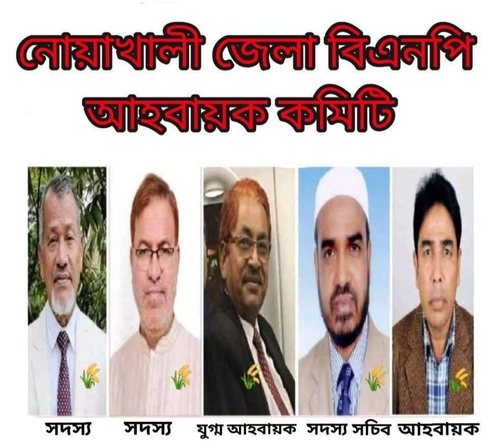 নোয়াখালী জেলা বিএনপির ৫ সদস্য বিশিষ্ট আংশিক আহবায়ক কমিটি ঘোষণা করা হয়েছে। কমিটিতে মাহবুব আলমগীর আলো কে আহবায়ক ও হারুনুর রশিদ আজাদ কে সদস্য সচিব নির্বাচিত করা হয়।