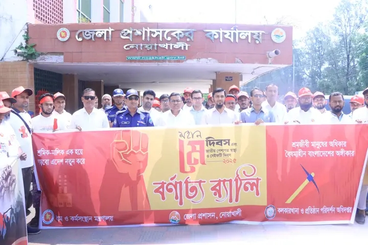 ১লা মে ( বুধবার) সকাল ১০টায় নোয়াখালী জেলা প্রশাসনের আয়োজনে পালিত হয়েছে মহান মে দিবস ও জাতীয় পেশাগত স্বাস্থ্য ও সেইফটি দিবস-২০২৫। এবারের প্রতিপাদ্য ছিল—“শ্রমিক-মালিক এক হয়ে গড়বো এদেশ নতুন করে”। দিবসটি উপলক্ষে জেলা প্রশাসন এক বর্ণাঢ্য র্যালি ও আলোচনা সভার আয়োজন করে।