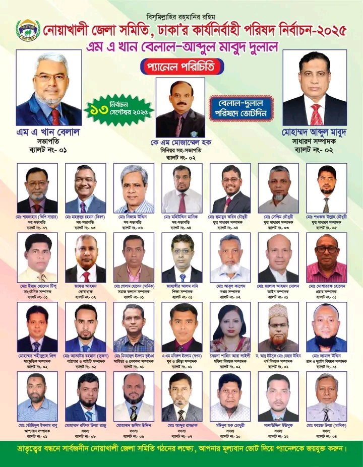 বিশিষ্ট শিল্পপতি ব্যবসায়ী ফখরুল সাহেবের নেতৃত্বাধীন আজীবন সদস্য সমন্বয় পরিষদের প্রার্থীরা এবারই প্রথমবারের মতো নোয়াখালী জেলা সমিতির নির্বাচনে অংশ নিচ্ছে।