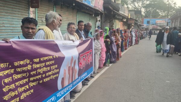 নোয়াখালীতে বিএনপির নেতাকর্মিদের মিথ্যা হত্যা মামলায় জড়ানোর প্রতিবাদে মানববন্ধন