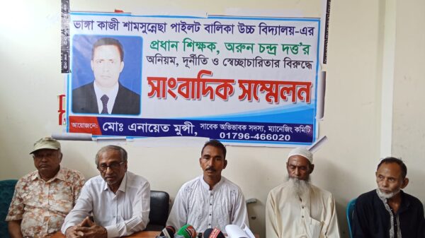 ভাঙ্গায় সেই সমালোচিত প্রধান শিক্ষক অরুন চন্দ্র দত্তের দূর্ণীতির বিচার দাবিতে সংবাদ সম্মেলন