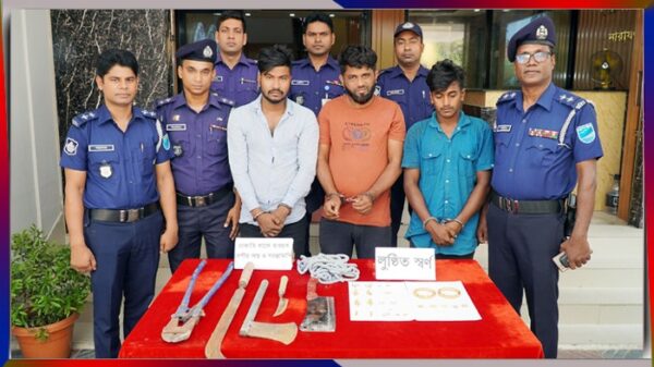 নারায়ণগঞ্জ জেলার সিদ্ধিরগঞ্জ থানা পুলিশের বিশেষ অভিযান চালিযে ৩ ডাকাতকে গ্রেপ্তার করা হয়েছে। পরে তাদের তথ্যমতে ডাকাতি হওয়া তিন ভরি স্বর্ণ ও ডাকাতির কাজে ব্যবহৃত দেশীয় অস্ত্র ও সরঞ্জাম উদ্ধার