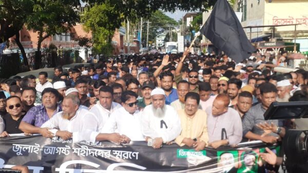 কেন্দ্রীয় কর্মসূচীর অংশ হিসেবে জেলা বিএনপির জুলাই আগস্ট শহীদদের স্মরণে মৌন মিছিল। ছবি উপকূল বার্তা নোয়াখালীতে ১৮ জুলাই শুক্রবার বিকেল ৪ টায় ঐতিহাসিক জুলাই-আগস্ট গণ-আন্দোলনের শহীদদের স্মরণে নোয়াখালী জেলা বিএনপির