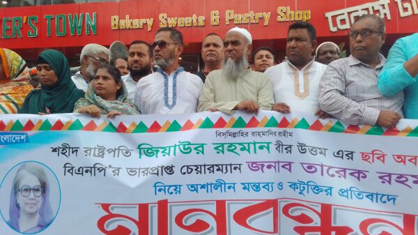 মো. ইদ্রিস মিয়া শহীদ রাষ্ট্রপতি জিয়াউর রহমান বীর উত্তমের ছবি অবমাননা এবং বিএনপির ভারপ্রাপ্ত চেয়ারম্যান তারেক রহমানকে নিয়ে অশালীন ও কটুক্তির প্রতিবাদে নোয়াখালীতে মানববন্ধন কর্মসূচি পালন করেছে জাতীয়তাবাদী সামাজিক ও