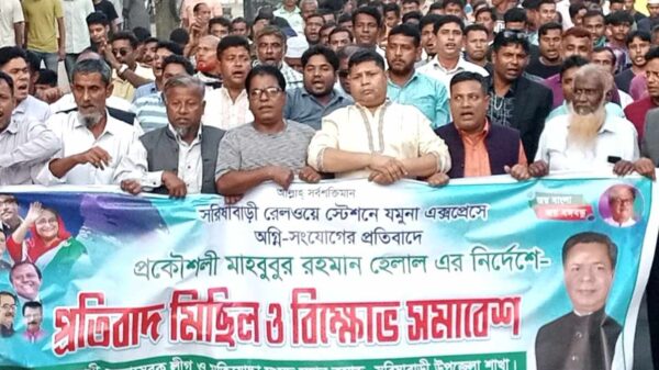 জামালপুর সরিষাবাড়ীতে আন্তঃনগর যমুনা এক্সপ্রেস ট্রেনে অগ্নিসংযোগে জড়িত বিএনপি-জামায়াত সন্ত্রাসীদের বিচার চান মুক্তিযোদ্ধার সন্তান ও স্বেচ্ছাসেবক লীগ নেতাকর্মীরা। এ দাবিতে কেন্দ্রীয় স্বেচ্ছাসেবক লীগের মৎস্য ও প্রাণিসম্পদ বিষয়ক সম্পাদক প্রকৌশলী মাহবুবুর