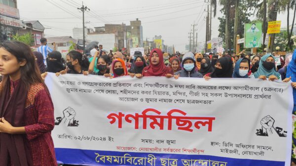 ছাত্র জনতার সমন্বয়ে নোয়াখালীতে বৈষম্য বিরোধী ছাত্র আন্দোলনের বিক্ষোভ মিছিল, অবস্থান কর্মসূচি