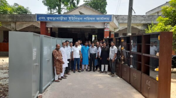 ২০২৩-২৪ অর্থ বছরের ভূমি হস্তান্তর কর থেকে প্রাপ্ত অর্থ দিয়ে ঝিনাইদহ সদর উপজেলার কুমড়াবাড়িয়া ইউনিয়নের পাঁচটি বিদ্যালয়ে আলমারী ও বুকসেফল প্রদান করেন অত্র ইউনিয়নের চেয়ারম্যান মোঃ সিরাজুল করিম, এ