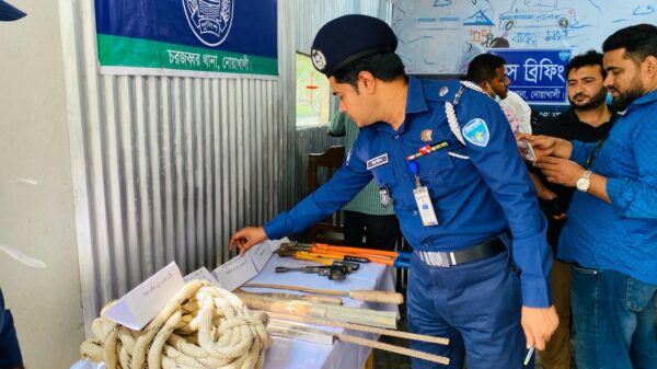 নোয়াখালীতে ডাকাতি প্রস্তুতিকালে অস্ত্রসহ ৯ ডাকাত গ্রেপ্তার নোয়াখালীতে সুবর্ণচরে ডাকাতির প্রস্তুতিকালে দেশীয় অস্ত্রসহ ৯ ডাকাতকে গ্রেপ্তার করেছে পুলিশ। রোববার (২৫ ফেব্রুয়ারি) বিকেলে আসামিদের নোয়াখালী চীফ জুডিসিয়াল ম্যাজিস্ট্রেট আদালতে সোপর্দ করা