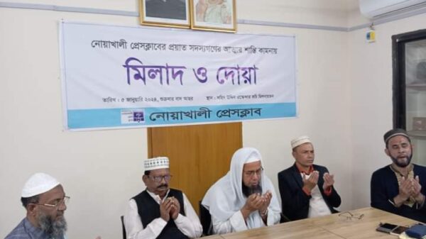 নোয়াখালী প্রেসক্লাবে প্রয়াত সাংবাদিকদের স্মরণে মিলাদ ও দোয়া অনুষ্ঠিত