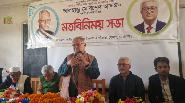 নোয়াখালী-২ (সেনবাগ-সোনাইমুড়ী আশিংক) আসনের আওয়ামী লীগের দলীয় নৌকা প্রতীক প্রার্থী আলহাজ মোরশেদ আলমকে সমর্থন দিয়েছে উপজেলা জাতীয় পার্টির একাংশ। মঙ্গলবার (২৬ ডিসেম্বর) দুপুর ১টার দিকে উপজেলার অর্জুনতলা ইউনিয়নের বাতাকান্দি স্কুল