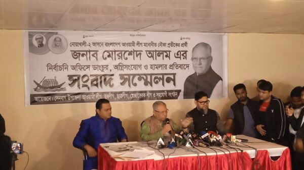 ছবি ইমাম উদ্দিন রুবেল নোয়াখালী-২ (সেনবাগ-সোনাইমুড়ী আংশিক) আসনের নির্বাচনী অফিস ভাঙচুর, আগুন দেওয়াসহ হত্যার হুমকির প্রতিবাদে নৌকার প্রার্থী আলহাজ মোরশেদ আলম সংবাদ সম্মেলন করেছেন। নৌকা প্রার্থী অভিযোগ করেন , স্বতন্ত্র
