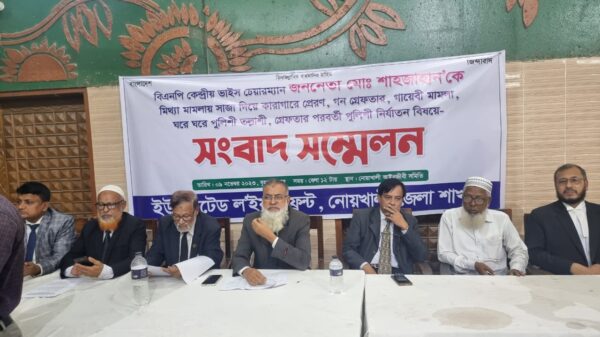 নোয়াখালী নোয়াখালীতে বিরোধী রাজনৈতিক নেতাকর্মিদের গণগ্রেপ্তার ও থানায় থানায় গায়েবি মামলা দায়ের করা হচ্ছে বলে অভিযোগ করেছে ইউনাইটেড লইয়ার্স ফ্রন্ট। বৃহস্পতিবার (৯ অক্টোবর) দুপুর সাড়ে ১২টার দিকে নোয়াখালী আইনজীবী সমিতি