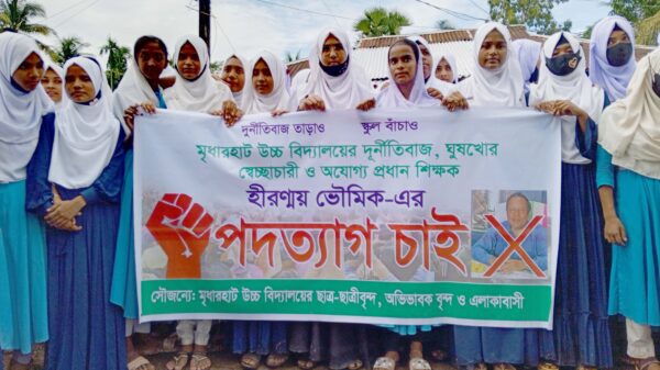 নোয়াখালীতে প্রধান শিক্ষকের পদত্যাগের দাবিতে মানববন্ধন : শিক্ষকের পদত্যাগ