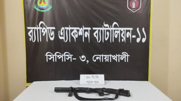নোয়াখালী প্রতিনিধি নোয়াখালীতে গত ৫ আগস্ট থানা থেকে লুট হওয়া একটি গ্যাসগান পরিত্যক্ত অবস্থায় উদ্ধার করেছে র্যাব-১১। বৃহস্পতিবার দিবাগত রাত পৌনে ২টার দিকে এক প্রেস বিজ্ঞপ্তিতে বিষয়টি নিশ্চিত করেছেন র্যাব-১১,